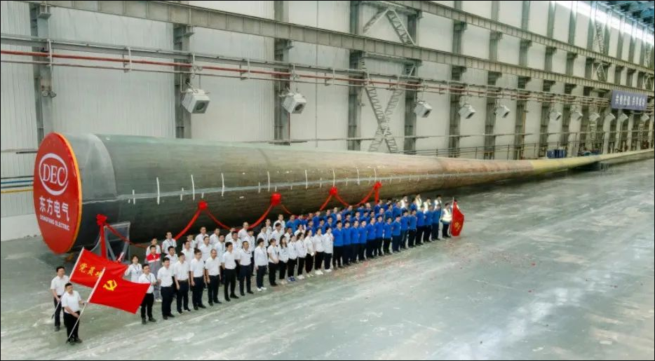 6月15日,东方风电自主研制、拥有完全自主知识产权的B1085A型叶片在山东叶片制造基地顺利下线。该叶片单支长度108.5米,是东方风电针对海上中低风速区域,研制的一款110米级风电叶片。
