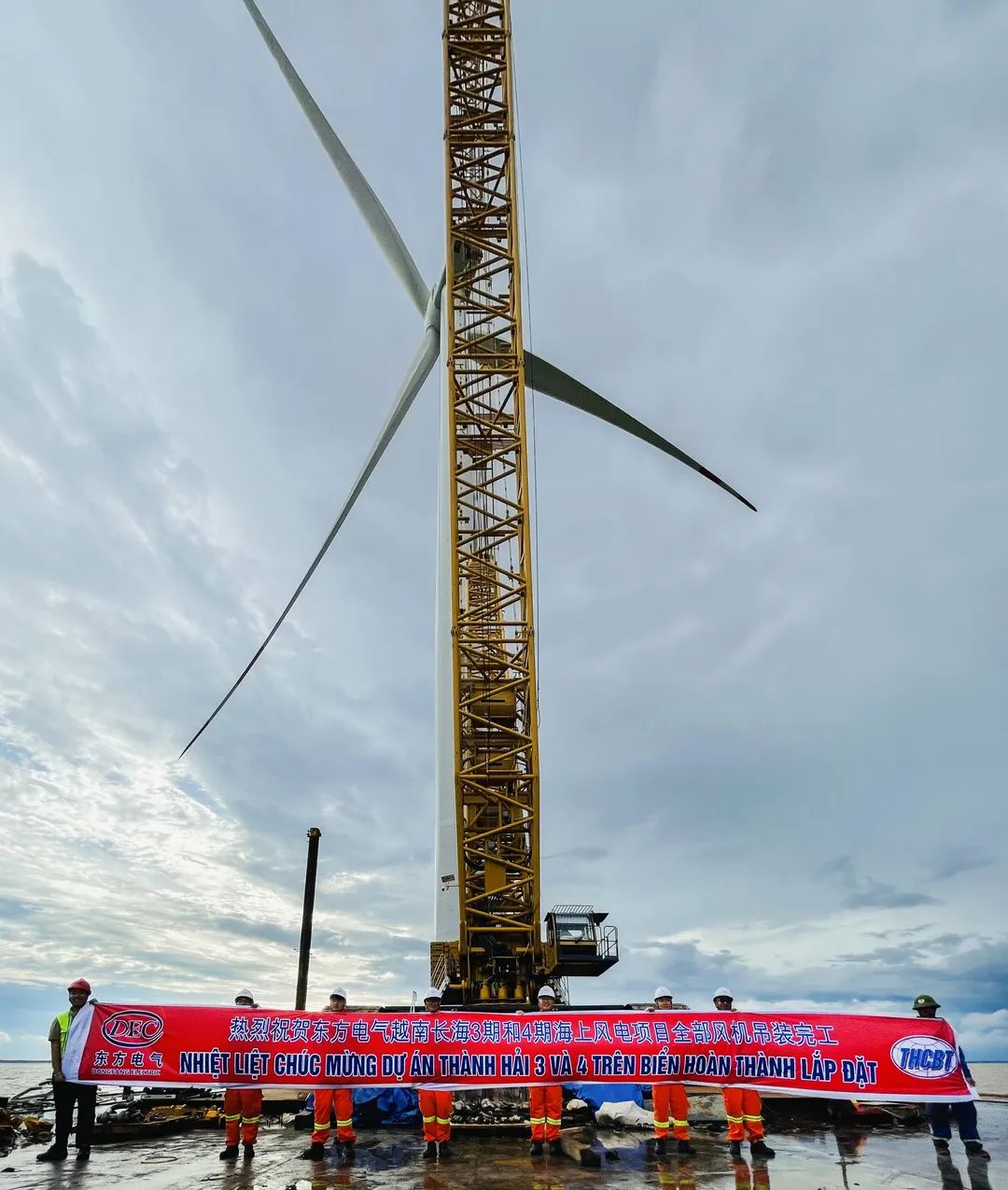 9月4日,随着最后一台机组的叶轮与发电机成功对接,标志着越南长海海上风电项目机组全部完成吊装。该项目是东方风电首个出口海上风电项目,采用公司自主研发的4.5兆瓦海上风电机组。