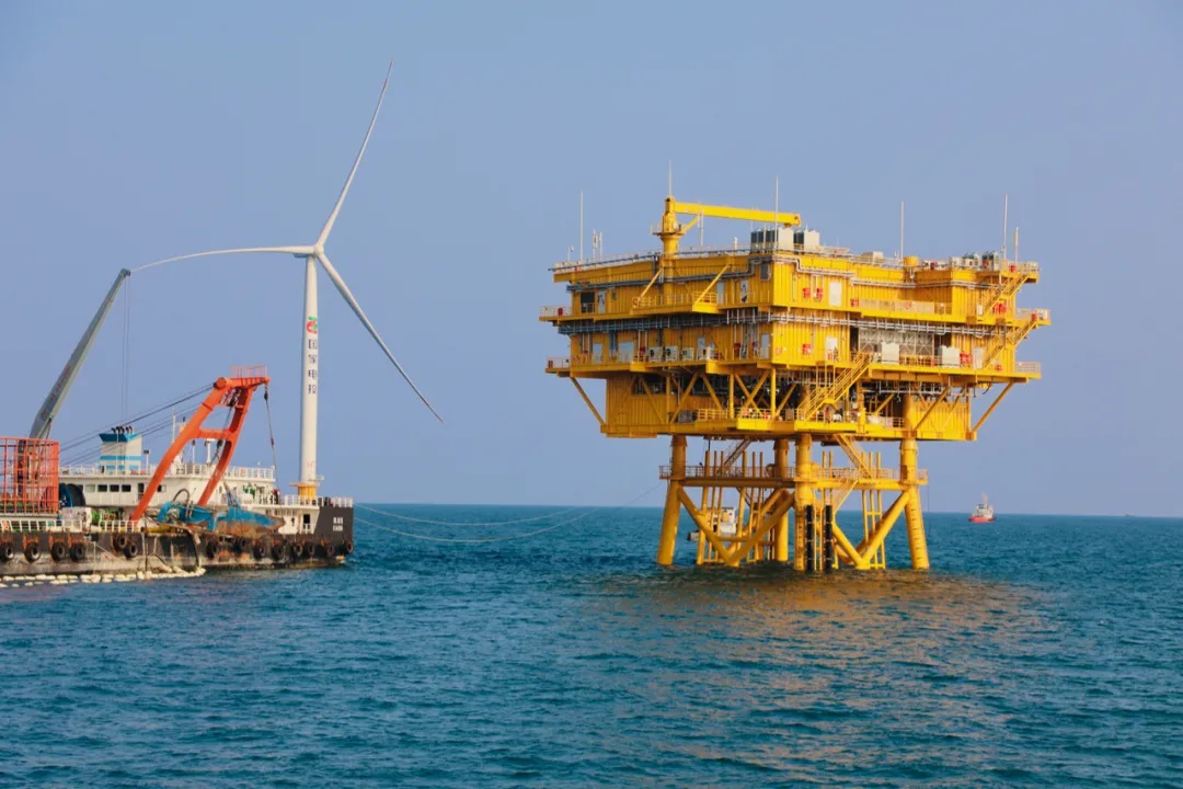 海上升压站,从发运到吊装就位用时仅24小时,敷设长度达47km,作业水深达31米的220千伏海缆,仅用10天完成敷设工作,生产准备高质量推进,从调度发令到首批机组并网仅用13小时。