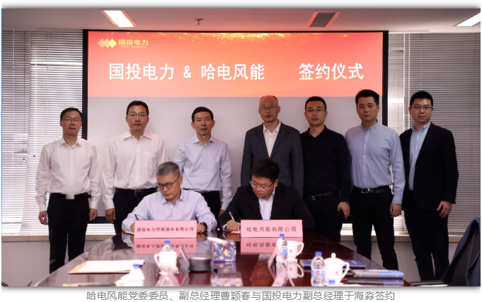 国投电力、总经理助理蔡继东,国投新能源总经理李强,哈电风能总经理助理马凤龙及双方相关负责同志参加签约仪式。