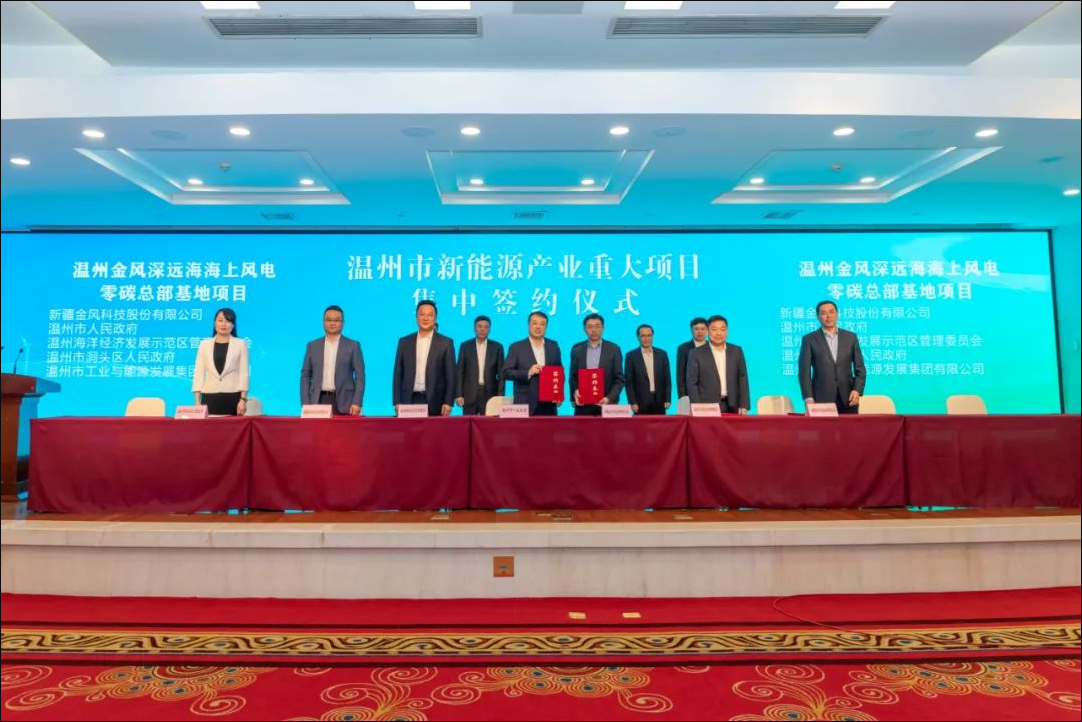 签约仪式由市委副书记、市长张振丰主持,金风科技分别与温州市人民政府、温州海洋经济发展示范区管理委员会、温州市洞头区人民政府签订战略合作框架协议和项目投资协议;并与温州市工业与能源发展集团有限公司、省级主要金融机构签订合作协议;还与温州海洋经济发展示范区管理委员会、温州市洞头区人民政府及11家重要供应链企业签订三方合作协议。