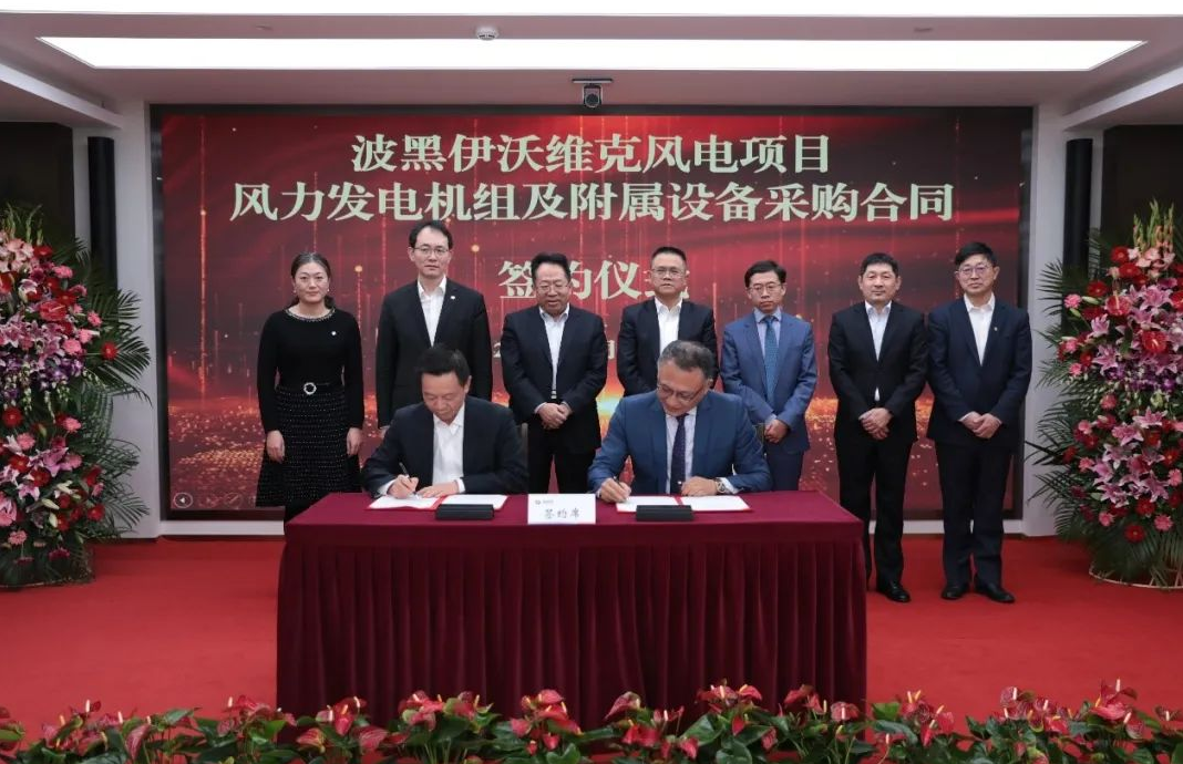 金风科技总裁曹志刚、金风科技副总裁吴凯,电建海投公司董事长盛玉明,中技公司总经理王艳明,成都院副总经理贺昌林,电建国际欧亚区域总部副总经理许江龙等企业代表出席仪式。