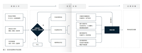 在役机组的寿命评估是多学科技术综合运用,白皮书描述了包括风场数据分析、机组状态检测、风资源的后评估、机组载荷评估、部件损伤分析等方面,在定制方案后,还要定期做寿命监测,是动态的寿命监测方案,最终为风电项目运行决策提供依据。