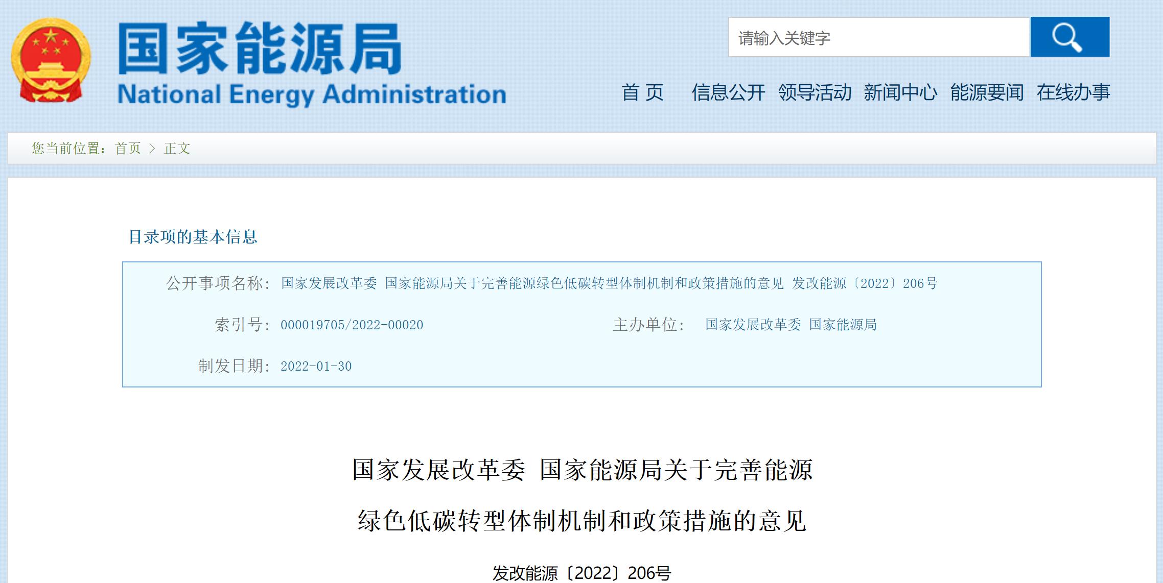 2月10日,国家发展改革委 国家能源局发布关于完善能源绿色低碳转型体制机制和政策措施的意见,意见提出:推动构建以清洁低碳能源为主体的能源供应体系。以沙漠、戈壁、荒漠地区为重点,加快推进大型风电、光伏发电基地建设,对区域内现有煤电机组进行升级改造,探索建立送受两端协同为新能源电力输送提供调节的机制,支持新能源电力能建尽建、能并尽并、能发尽发。