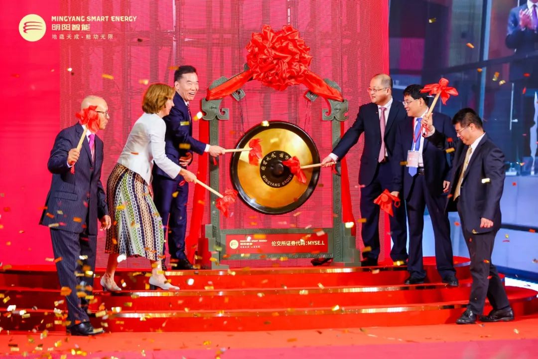7月13日下午15时,英国格林尼治时间上午8时,明阳智能发行的GDR(全球存托凭证)在伦交所正式挂牌上市,并在中山举行庆祝仪式,英国驻华大使吴若兰(Caroline Wilson DCMG),中山市委书记、市人大常委会主任郭文海,中山市市长肖展欣,明阳集团党委书记、董事长张传卫参加活动。这是明阳在上交所和伦交所两地同时挂牌交易的里程碑事件,此举将积极推进公司全球化市场布局。至此,明阳智能成为了互联互通存托凭证业务新规落地以来,首家完成GDR境外上市的A股上市公司,首家成功发行GDR的民营企业,是中国清洁能源高端装备制造企业在国际市场的又一次完美亮相。