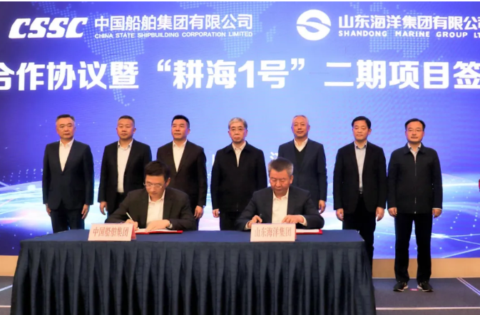 继2019年1月16日中船重工与山东省山东省政府签订战略合作协议后,2020年12月21日,中国船舶集团有限公司党组书记、董事长雷凡培与山东省委书记、省人大常委会主任刘家义在济南亲切会见。双方围绕共同服务国家战略,就进一步加强交流合作、实现共同发展进行深入交流并达成共识。雷凡培、凌文、孙伟等领导共同见证了中国船舶集团与山东海洋集团有限公司签署战略合作框架协议、中国船舶集团旗下大船集团渤船重工与山东海洋现代渔业有限公司签署“耕海1号”二期平台建造合同。双方在船舶业务、内河港口航道开发、新能源开发利用、现代海洋牧场及冷链物流等领域开启全面深度合作。共同推进山东现代海洋渔业发展,新能源产业发展,西湾基地转型发展,海洋装备自主创新与JMRH发展,参与山东基础设施建设,支持山东海洋集团发展。