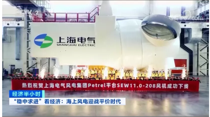 在此背景下,中央电视台财经频道于1月4日晚播出的《经济半小时》节目聚焦了“海上风电迎战平价时代”。节目以较大篇幅介绍了上海电气风电集团提前谋划、布局海上平价时代的诸多举措,对电气风电从研发到运维等环节的新技术、新突破进行了精要的总结。
