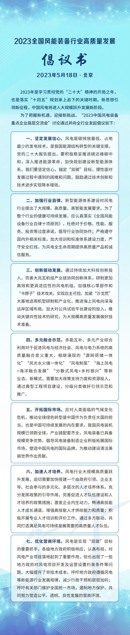会议讨论并通过《全国风能装备行业高质量发展倡议书》。