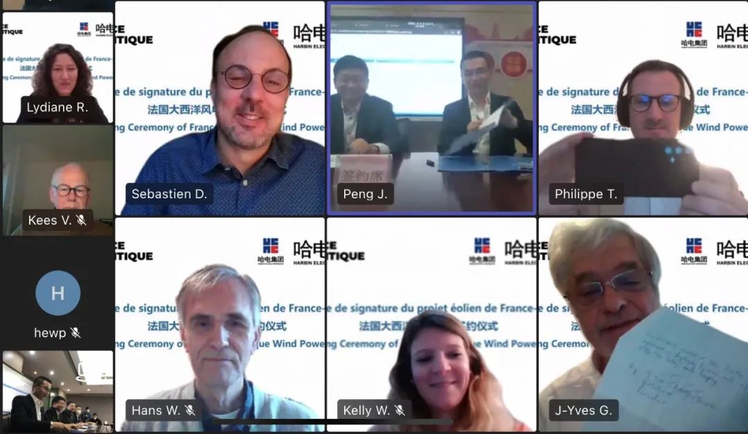 12月23日,哈电风能有限公司(以下简称“哈电风能”)与法国大西洋项目公司(以下简称“ 大西洋项目公司 ”)举行了“法国大西洋5MW漂浮式风电项目”云签约仪式。双方将携手推动漂浮式技术发展创新,促进海上风电产业发展,推动全球能源零碳转型。哈电风能党委委员、副总经理曹颖春,大西洋项目公司负责人GRAND IDIER先生出席仪式。