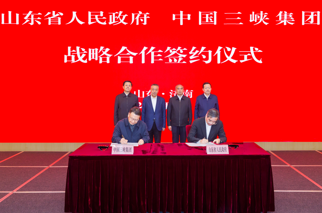 2月2日,三峡集团与山东省政府在济南签署深化战略合作协议。山东省委书记、省人大常委会主任林武,省委副书记、省长周乃翔与三峡集团董事长、党组书记雷鸣山,总经理、党组副书记韩君共同见证协议签署。山东省委常委、副省长曾赞荣,三峡集团副总经理、党组成员王良友分别代表双方签署协议。山东省委常委、省委秘书长张海波,副省长、政府秘书长、办公厅党组书记宋军继参加签约仪式。
