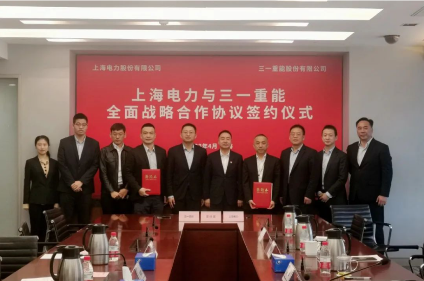 4月22日,三一重能股份有限公司(以下简称:三一重能,688349.SH)副总经理余梁为与上海电力股份有限公司(以下简称:上海电力,600021.SH)党委书记、董事长林华在上海进行了会晤交流。在双方共同见证下,三一重能营销公司副总经理洪勇与上海电力副总经理李峰共同签署了战略合作协议。